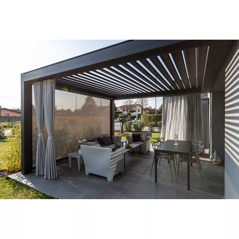 이 유형은 야외 공간이 날씨에 어떻게 반응하는지에 중점을 둡니다. 빛, 공기 흐름 및 비 보호를 제어할 수 있는 회전식 또는 접이식 루버가 함께 제공됩니다. 사계절 내내 사용할 수 있는 편안한 공간을 만들도록 설계되었습니다.